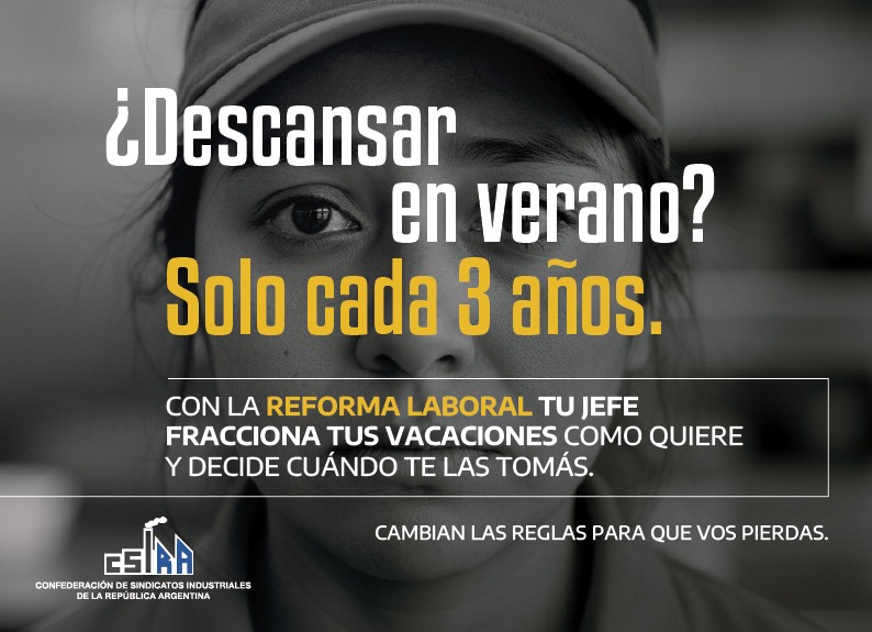 Los sindicatos industriales nucleados en CSIRA lanzaron una campaña de comunicación para advertir sobre el impacto de la reforma laboral en los trabajadores.